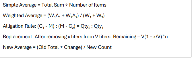 | Alligation (2 ingredients) | 1 | Draw crisscross diagram |